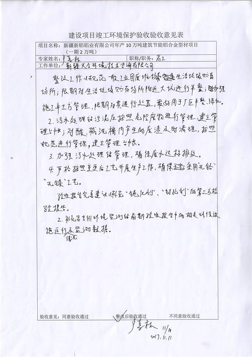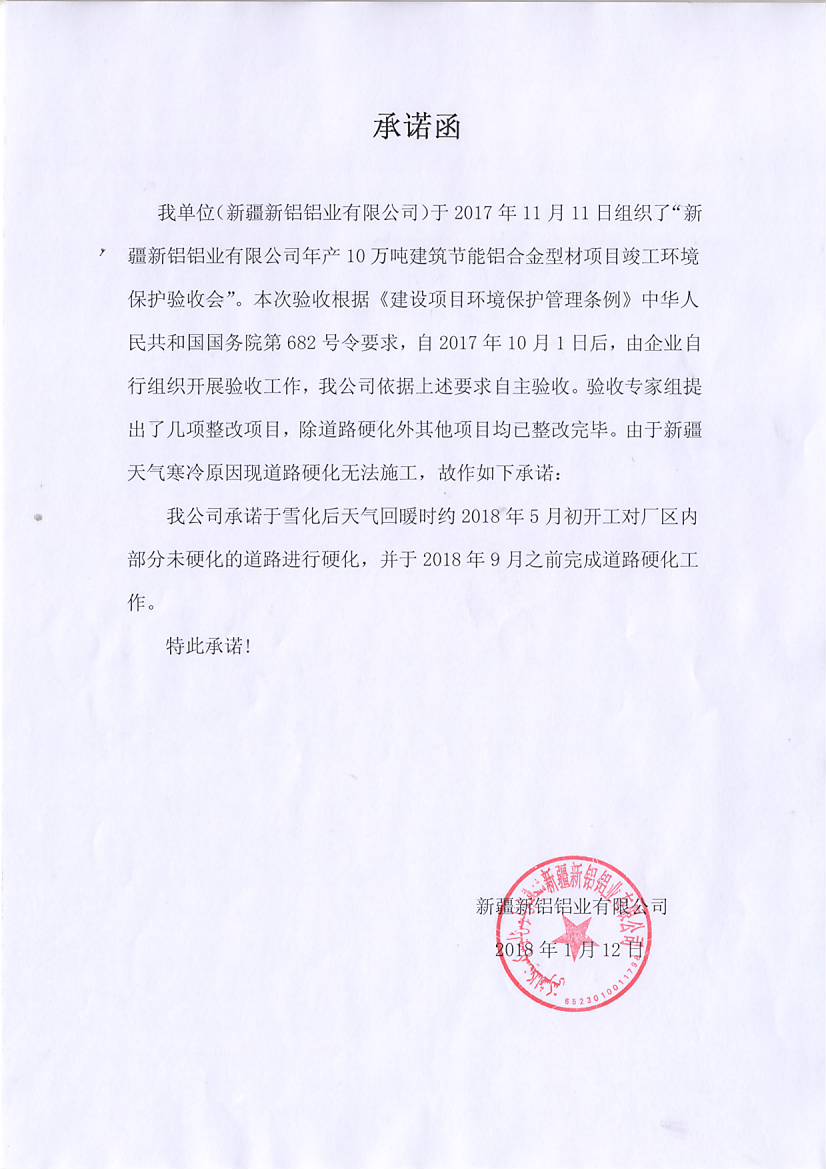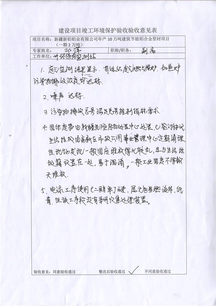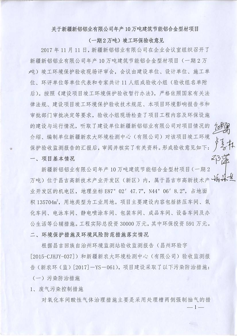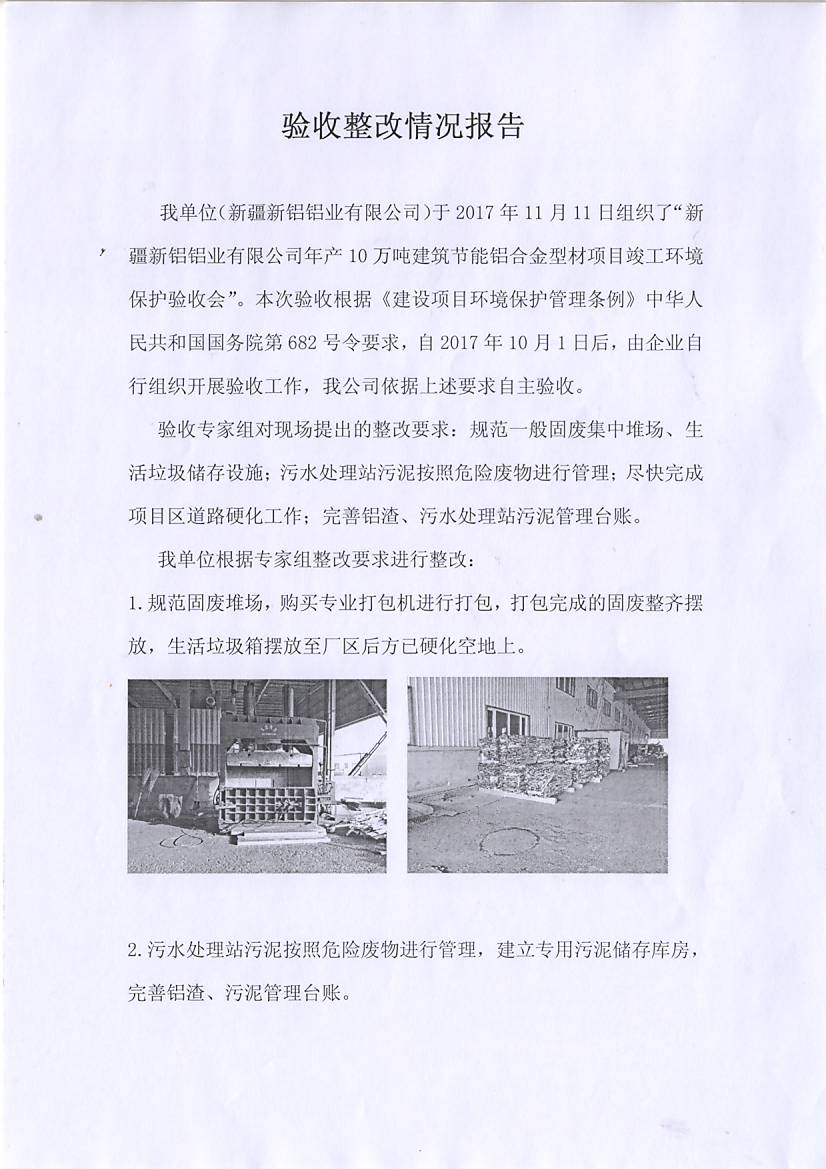 新疆新鋁鋁業(yè)有限公司年產(chǎn)10萬噸建筑節(jié)能鋁合金型材項目驗收報告